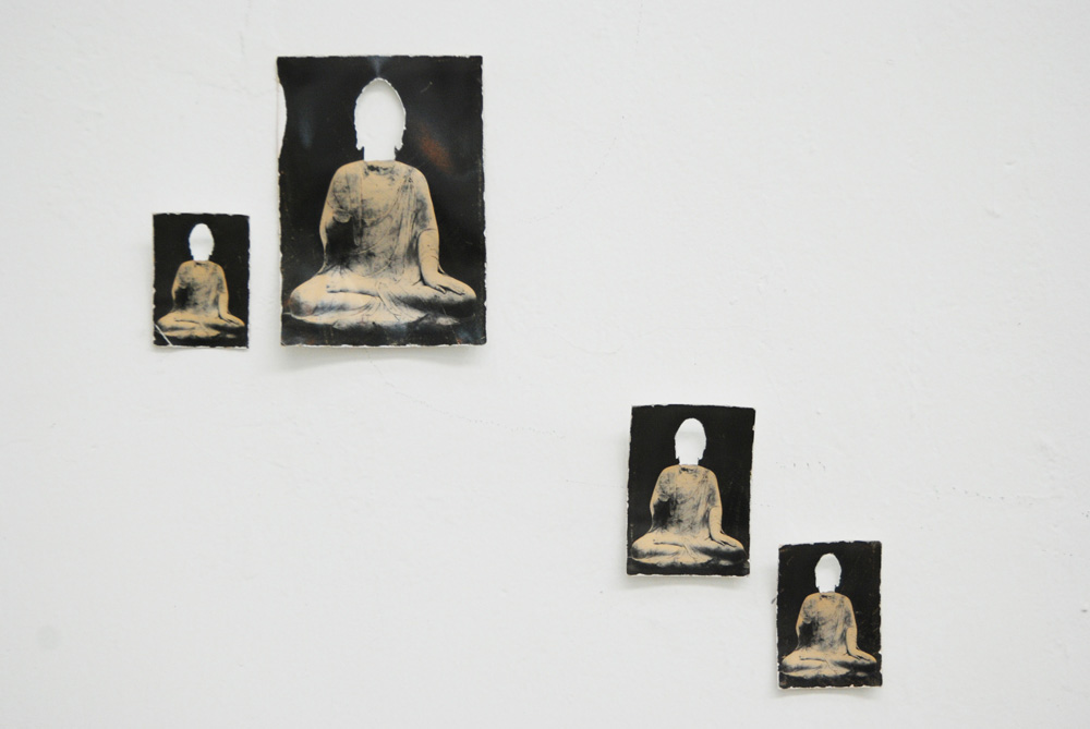 这是一尊佛头遗失的佛像,我将佛头遗失的部分“还原”出后镂空, 让观者从中寻找到自己,最终让观者自己去“还原”佛像。所谓“佛是过来人,人是未来佛”